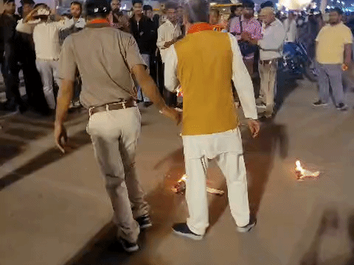 अयोध्या में शंकराचार्य अविमुक्तेश्वरानंद का पुतला जलाया गया:RSS के वरिष्ठ प्रचारक इंद्रेश कुमार पर दिए गए बयान का विरोध