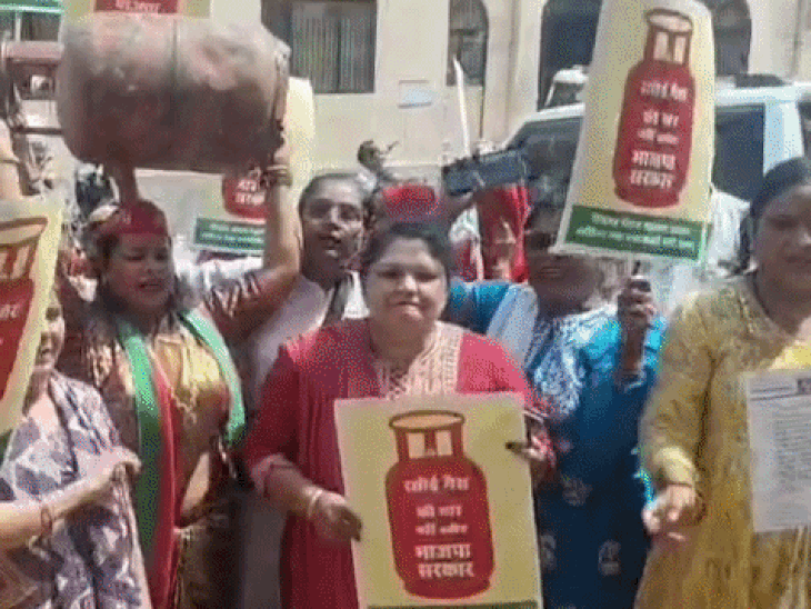 आगरा में गैस सिलेंडर को लेकर सपा का हंगामा:कमर्शियल की जगह अब दुकानों पर दिख रहे घरेलू सिलेंडर, हलवाई बोले-व्यापार के लिए चलाना पड़ रहा