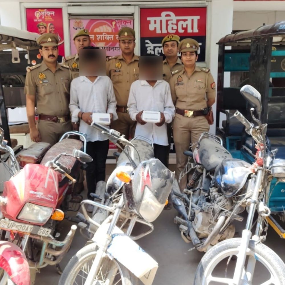 सोमवार को मुखबिर की सूचना पर पुलिस ने आशाराम बापू मार्ग से दो आरोपियों को गिरफ्तार कर लिया। आरोपियों की पहचान रामादेवी कानपुर निवासी शैलेंद्र और बेगरिया दुबग्गा निवासी नितेश कुमार शाह के रूप में हुई। दोनों दिन में दुकानों में काम करते हैं और रात को चोरी की घटना को अंजाम देते हैं। इनके पास से दो चोरी के वाहन बरामद हुए। पूछताछ और निशानदेही पर आरोपी नितेश के काशीराम कॉलोनी हंसखेड़ा स्थित किराए के मकान से तीन अन्य चोरी के वाहन भी बरामद किए गए। पुलिस पूछताछ में आरोपियों ने दो ई-रिक्शा और तीन मोटरसाइकिलें चोरी करना स्वीकार किया। उन्होंने बताया कि ये वाहन कृष्णानगर, मोहन रोड, हरदोई रोड और लालाबाग पुल क्षेत्र से अलग-अलग समय पर चोरी किए गए थे। दोनों महंगे शौक और मौज मस्ती के लिए चोरी की घटना को अंजाम देते थे। आरोपी शैलेन्द्र के खिलाफ लखनऊ के विभिन्न थानों में पहले से चोरी के कई मुकदमे दर्ज हैं।