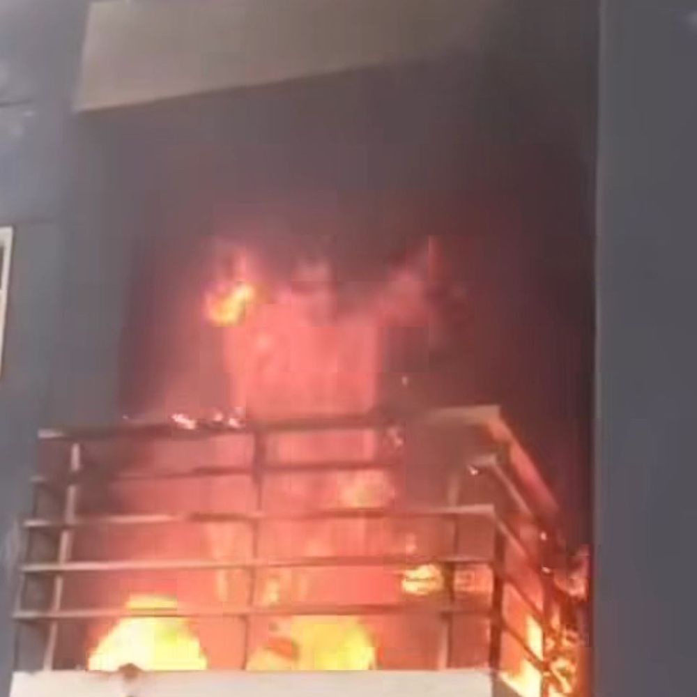 ग्रेटर नोएडा में हॉस्टल की 12वीं मंजिल पर लगी आग:लपटों से मची अफरा-तफरी, बड़ा हादसा टला