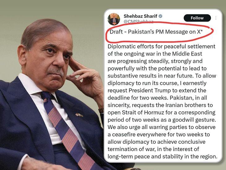 पाकिस्तान के प्रधानमंत्री शहबाज शरीफ के सोशल मीडिया पोस्ट को लेकर बड़ा विवाद खड़ा हो गया है। यह पोस्ट अमेरिका-ईरान सीजफायर से जुड़ा था और सोशल मीडिया पर काफी चर्चा में आ गया। पोस्ट की एडिट हिस्ट्री में ‘ड्राफ्ट- पाकिस्तानी PM का मैसेज’ दिखने के बाद सोशल मीडिया पर इसे लेकर कई दावे किए जा रहे हैं। सवाल उठ रहे हैं कि क्या यह मैसेज पहले से तैयार ड्राफ्ट था। कुछ यूजर्स ने इसे व्हाइट हाउस से जुड़े निर्देश जैसा बताया, जबकि कुछ ने कहा कि ट्रम्प पाकिस्तान की नीति को कंट्रोल कर रहे हैं, यह उनकी गुलामी करने जैसा है। हालांकि, पाकिस्तान खुद को अमेरिका और ईरान के बीच मध्यस्थ के रूप में पेश कर रहा है। PM शहबाज ने 2 हफ्ते की डेडलाइन बढ़ाने की मांग की शहबाज शरीफ ने मंगवलार की रात X पर एक मैसेज पोस्ट किया, जिसमें उन्होंने अमेरिकी राष्ट्रपति ट्रम्प से अपील की थी कि वे ईरान के खिलाफ सैन्य कार्रवाई की धमकी देने की अपनी समय-सीमा (डेडलाइन) को दो हफ्ते के लिए बढ़ा दें, ताकि बातचीत को आगे बढ़ने का मौका मिल सके। शरीफ ने यह भी कहा कि पाकिस्तान ईमानदारी से ईरान से अपील करता है कि वह होर्मुज स्ट्रेट को दो हफ्ते के लिए खोल दे, ताकि इसे एक अच्छा कदम माना जा सके। इसके साथ ही शरीफ ने सभी लड़ाई में शामिल पक्षों से कहा कि वे हर जगह दो हफ्ते के लिए जंग रोक दे, ताकि बातचीत के जरिए इस जंग को पूरी तरह खत्म किया जा सके और क्षेत्र में लंबे समय तक शांति और स्थिरता लाई जा सके। ड्राफ्ट वाला विवाद कैसे शुरू हुआ असल विवाद तब शुरू हुआ जब शहबाज शरीफ के अकाउंट से जो पहला पोस्ट गया, उसमें ऊपर लिखा था- ‘ड्राफ्ट- पाकिस्तानी PM का मैसेज’ यानी यह एक ड्राफ्ट मैसेज था, जो शायद पब्लिक के लिए नहीं था। थोड़ी ही देर में इस पोस्ट को एडिट कर दिया गया और ‘ड्राफ्ट’ शब्द हटा दिया गया, लेकिन बाकी पूरा मैसेज वैसा ही रखा गया। लेकिन तब तक सोशल मीडिया यूजर्स स्क्रीनशॉट ले चुके थे, जिससे यह मामला वायरल हो गया। दावा- अमेरिका या इजराइल ने ड्राफ्ट तैयार किया इस मामले में सबसे ज्यादा चर्चा इस बात पर हुई कि क्या यह मैसेज वास्तव में पाकिस्तान में तैयार हुआ था या कहीं बाहर से आया था। कुछ लोगों ने तो विदेशी दखल की बात भी कही, लेकिन अभी तक इन दावों की कोई पुष्टि नहीं हुई है। ड्रॉप साइट के फाउंडर रयान ग्रिम ने फोर्ब्स से कहा कि यह मैसेज शायद शहबाज शरीफ ने खुद नहीं लिखा। उन्होंने कहा कि अगर यह मैसेज उनकी अपनी टीम ने लिखा होता, तो वे अपने प्रधानमंत्री के लिए ‘पाकिस्तान के प्रधानमंत्री’ जैसा शब्द इस्तेमाल नहीं करते। इससे ऐसा लगता है कि यह मैसेज शायद अमेरिका या इजराइल में तैयार किया गया हो सकता है। सोशल मीडिया पर भी कई लोगों ने सवाल उठाए कुछ यूजर्स ने कहा कि यह पोस्ट शायद गलती से ‘ड्र