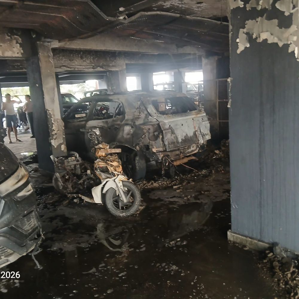 बरेली में अपार्टमेंट के ग्राउंड फ्लोर पर आग:कई वाहन जलकर राख, बिना अग्निशमन सुरक्षा के लोगो की जिंदगी खतरे में; शार्ट सर्किट से हादसा