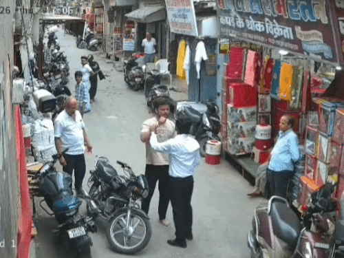 बाइक पार्किंग के विवाद में अधिवक्ता पर हमले का VIDEO:CCTV में दिखाई दे रही मारपीट की घटना, कोतवाली के सर्राफा बाजार का मामला