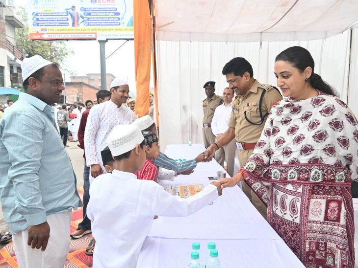 बुलंदशहर में ईद उल फितर पर सुरक्षा और शांति व्यवस्था:लोगों ने एक-दूसरे को गले लगाकर दी मुबारकबाद, डीएम-एसपी भी रहे मौजूद