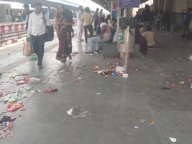 मथुरा जंक्शन पर सफाई कर्मचारियों की हड़ताल:वेतन न मिलने से स्टेशन पर गंदगी के ढेर