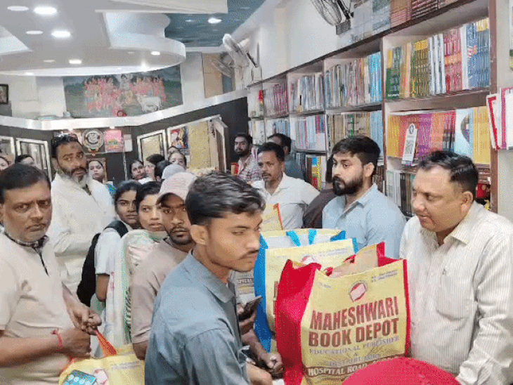महंगी किताब जरूरी कर शोषण कर रहे प्राइवेट स्कूल:बुक डिपाे के बाहर 'पापा' संस्था ने किया प्रर्दशन, BEO ने दिए किताबों की बक्री पर रोक के निर्देश
