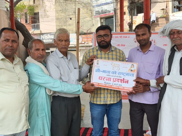 सहारनपुर में गौमाता को राष्ट्रमाता घोषित करने की मांग:आवारा गायों के संरक्षण के लिए ग्रामीणों ने सौंपा ज्ञापन