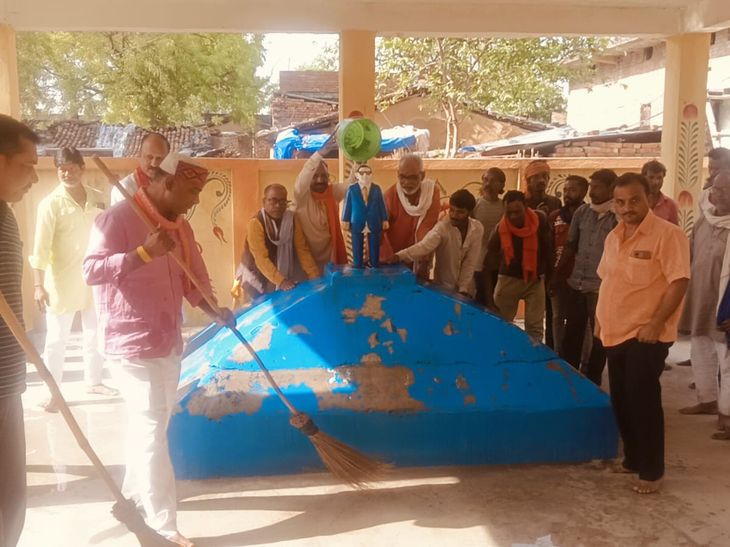 सोनभद्र में अंबेडकर जयंती पूर्व संध्या पर श्रमदान:भाजपा पदाधिकारियों, ग्रामीणों ने पार्क साफ कर दी श्रद्धांजलि