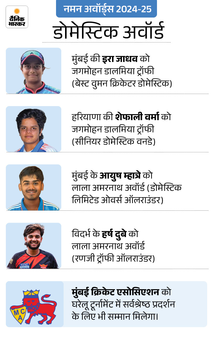 डोमेस्टिक क्रिकेट में किसे अवॉर्ड