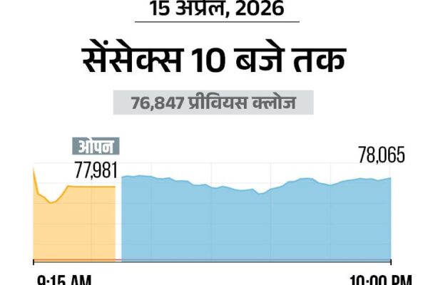 आज यानी बुधवार 15 अप्रैल को सेंसेक्स 1300 अंक (1.48%) की तेजी के साथ 78,000 पर कारोबार कर रहा है। निफ्टी में भी 400 अंकों (1.35%) की तेजी है, ये 24,250 के स्तर पर आ गया है। आज के कारोबार में ऑटो, आईटी, मेटल और बैंकिंग सेंक्टर के शेयरों में ज्यादा खरीदारी है। शेयर बाजार…