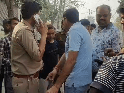 अलीगढ़ में गोकशी पर आक्रोश:बन्नादेवी के ITI रोड पर गर्दन कटा गोवंश मिलने पर करणी सेना ने की कार्रवाई की मांग