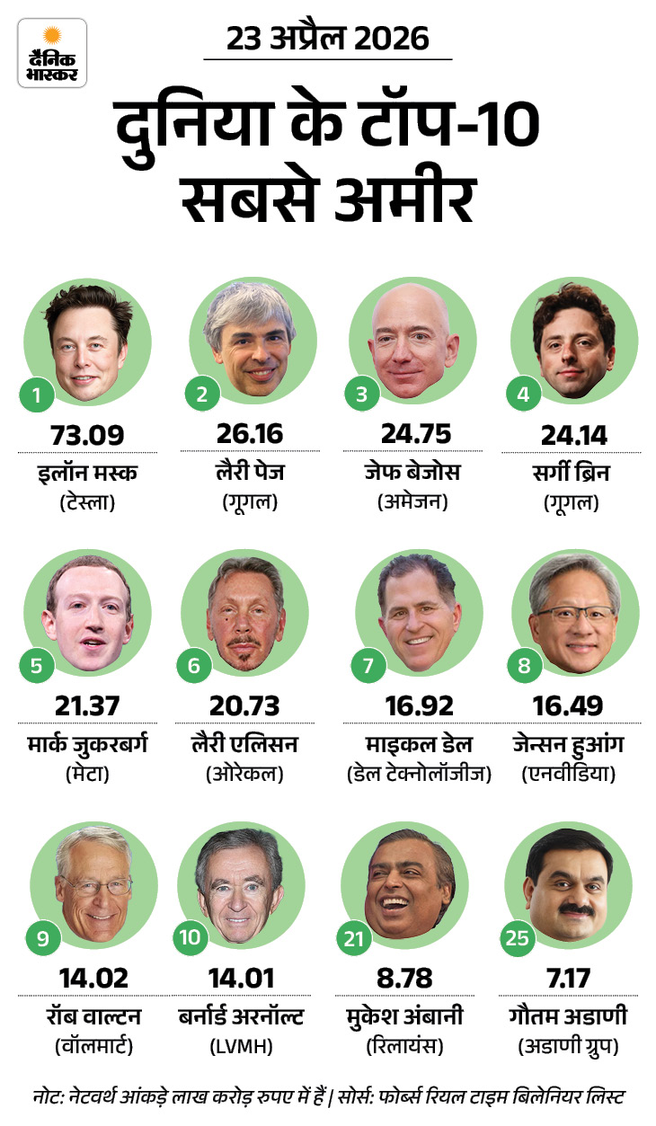 कल दुनिया के टॉप-10 सबसे अमीर कौन रहे यह भी देख लीजिए…
