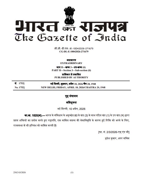 हरिवंश नारायण के नॉमिनेशन पर जारी नोटिफिकेशन