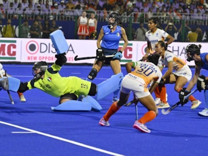 27वां मिनट: भारत को दूसरा पेनल्टी कॉर्नर मिला। टीम ने अलग वेरिएशन अपनाते हुए गेंद कप्तान सलीमा टेटे को दी, लेकिन उनका शॉट इटली के डिफेंडर ने गोल लाइन पर रोक दिया।