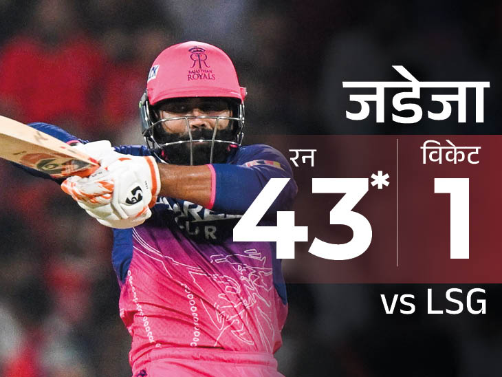 IPL 2026 में राजस्थान की पांचवीं जीत:लखनऊ को 40 रन से हराया; जडेजा ने 43 रन बनाए, एक विकेट भी लिया