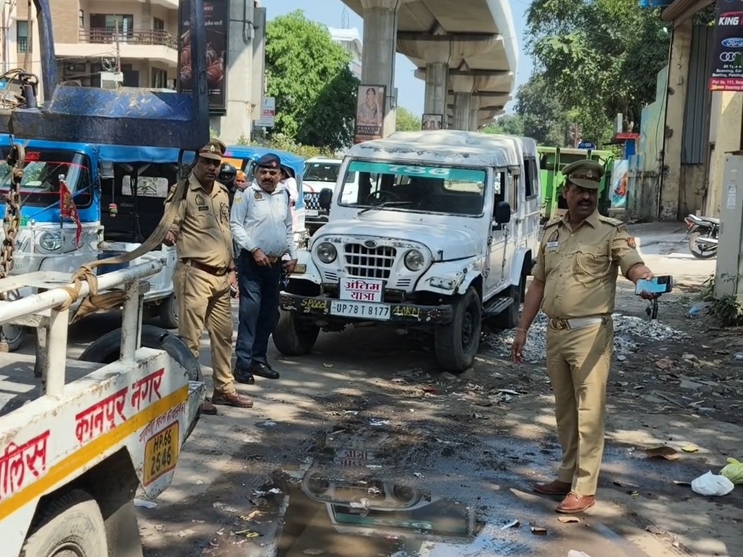 9- कानपुर में अतिक्रमण पर बड़ा एक्शन:क्रेन से उठवाई गईं गाड़ियां, पोस्टमार्टम हाउस के बाहर खड़ी एंबुलेंस भी हटवाई