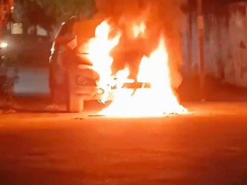 6- सपा विधायक की फॉर्च्यूनर में लगी आग:कानपुर में चलती कार बनी आग का गोला, सवार 2 लोग सुरक्षित