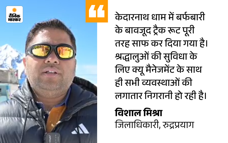दैनिक भास्कर ने केदारनाथ धाम की तैयारियों, बर्फबारी की स्थिति और यात्रा प्रबंधन को लेकर रुद्रप्रयाग के डीएम विशाल मिश्रा से एक्सक्लूसिव बातचीत की। उनके मुताबिक, 100 से ज्यादा श्रमिकों ने दिन-रात काम कर बर्फ की मोटी परतों को काटते हुए श्रद्धालुओं के लिए रास्ता तैयार कर दिया है।