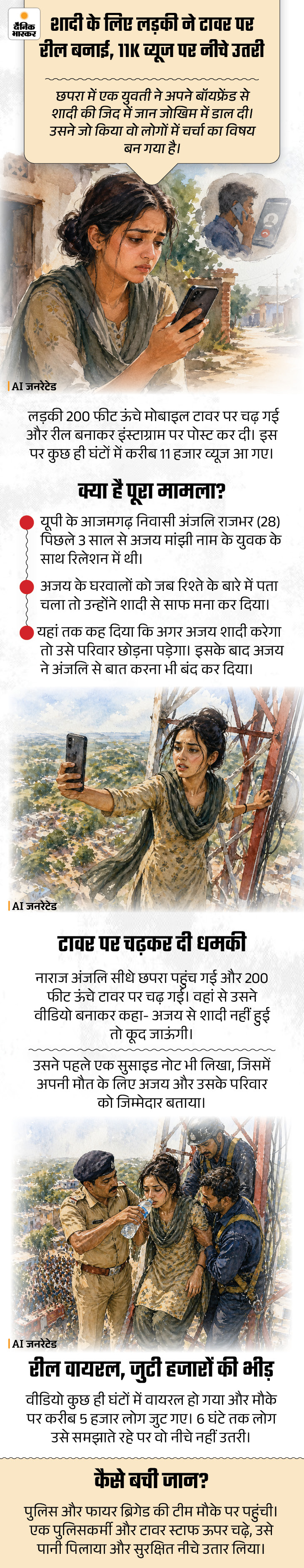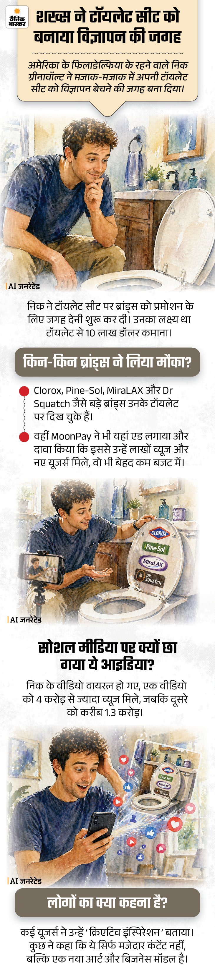 बिहार में एक लड़की शादी के लिए टावर पर चढ़ गई, वहां रील बनाकर पोस्ट कर दी, 11 हजार व्यूज आए तो नीचे उतरी। वहीं, अमेरिका में एक शख्स अपनी टॉयलेट सीट को विज्ञापन दिखाने वाली जगह के तौर पर बेच रहा है। उधर, मुंबई में हाइकोर्ट ने तोते को जंगली जानवर माना