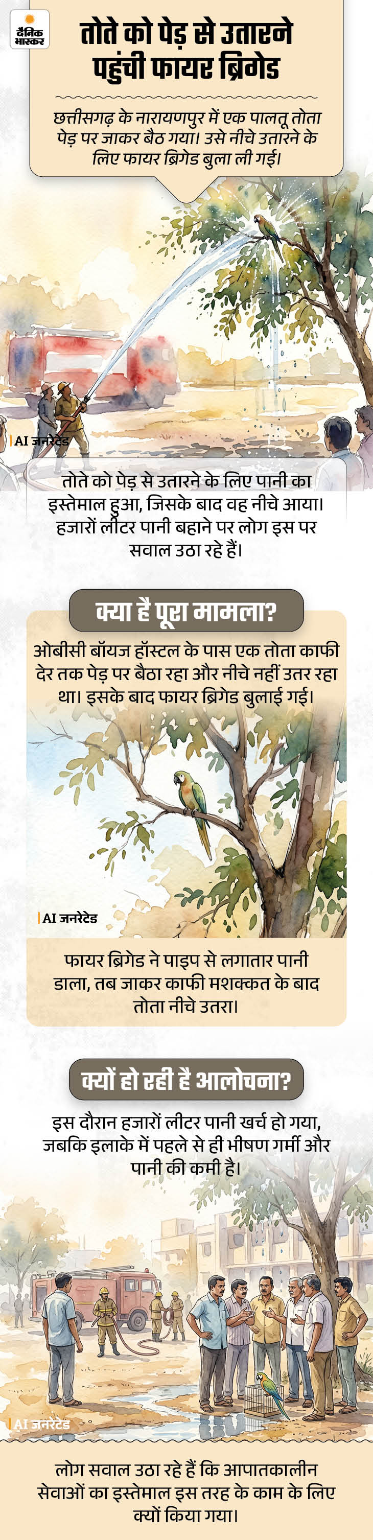 छत्तीसगढ़ में तोते को बचाने के लिए फायर ब्रिगेड का सहारा लेना पड़ा। वहीं, गुजरात में ट्रैफिक पुलिस की जैकेट में पंखा लगाया गया है, इसे कूलिंग जैकेट नाम दिया गया है। उधर, कनाडा में एक महिला को शरणार्थी का दर्जा दे दिया गया, लेकिन उसके पति और बेटे को द