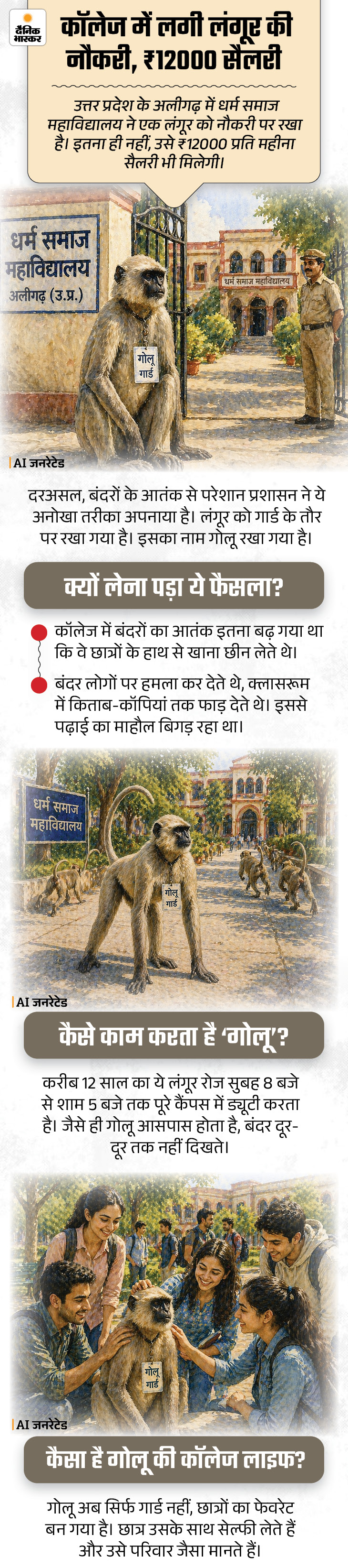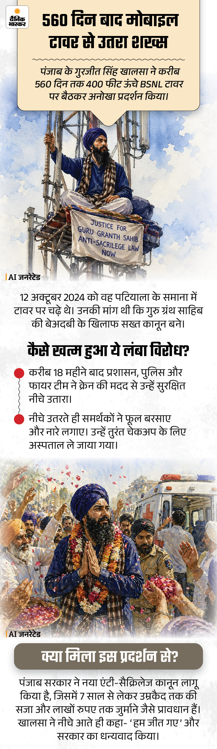 पंजाब में अपनी मांग मनवाने के लिए मोबाइल टावर पर चढ़ा शख्स 560 दिन बाद नीचे उतरा। वहीं, ब्रिटेन में 2008 के बाद जन्मे लोगों के लिए सिगरेट बैन कर दी गई है। उधर, उत्तर प्रदेश के एक कॉलेज में लंगूर को नौकरी पर रखा गया है। उसे हर महीने ₹12000 मिलेंगे।