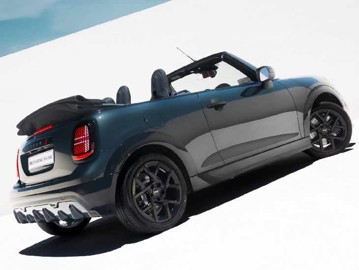 JCW पैक मिलने के बाद इस कन्वर्टिबल कार का लुक काफी एग्रेसिव हो गया है। कार में दो एक्सक्लूसिव पेंट शेड्स – ‘मिडनाइट ब्लैक’ और ‘लीजेंड ग्रे’ दिए गए हैं। लीजेंड ग्रे कलर में बोनट पर स्ट्राइप्स (पट्टियां) भी मिलती हैं।