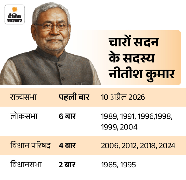 मुख्यमंत्री नीतीश कुमार ने चारों सदन का सदस्य बनने का रिकॉर्ड बनाया है। वो पहली बार राज्यसभा पहुंचे हैं, जबकि इसके पहले लोकसभा, बिहार विधान परिषद और विधानसभा के सदस्य रह चुके हैं।
