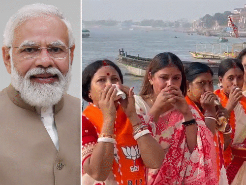 वाराणसी में PM मोदी के आने से मंगलवार सुबह बंगाली महिलाएं चौसठी घाट पर पहुंचीं। यहां शंखनाद किया। महिलाओं का कहना है कि बंगाल में चल रहे चुनाव में वे जीत को लेकर आश्वस्त हैं और उसी खुशी में काशी में यह आयोजन किया जा रहा है।
