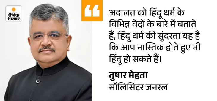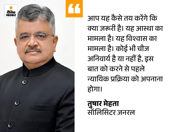 केंद्र की ओर से पेश SG मेहता ने कहा- हमें लगता है कि इतने बड़े पैमाने पर कही गई बात का समर्थन नहीं किया जा सकता। सबसे पहले किसी धर्म का जरूरी हिस्सा क्या है, यह मुख्य रूप से उस धर्म के सिद्धांतों के आधार पर ही पता लगाया जाना चाहिए।