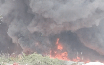 • गाजियाबाद में 200 झोपड़ियों में भीषण आग, सिलेंडर फटे:10 किमी दूर से दिखा धुआं, 22 गाड़ियों ने बुझाई आग
