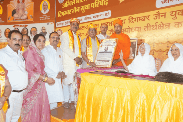 अखिल भारतवर्षीय दिगंबर जैन युवा परिषद के स्वर्ण जयंती वर्ष के उपलक्ष्य में मंगलवार को अयोध्या में भव्य “स्वर्ण जयंती एवं अवार्ड समर्पण समारोह मना।यह आयोजन मुनि विभास्वर सागर, मुनि शुद्धोपयोग सागर , श्रम सागर, मुनि सागर ,आदि संतों और गणिनी प्रमुख ज्ञानमती माता के पावन सानिध्य में हुआ। प्रज्ञाश्रमणी चंदनामती माता की प्रेरणा एवं…
