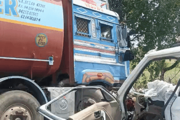 Khargone Road Accident | Tanker Hits Car, 3 Critically Injured