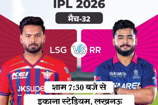 स्पोर्ट्स डेस्क1 घंटे पहले कॉपी लिंक IPL 2026 का 32वां मैच लखनऊ सुपर जायंट्स (LSG) और राजस्थान रॉयल्स (RR) के बीच खेला जाएगा। मुकाबला शाम 7:30 बजे लखनऊ के इकाना स्टेडियम में होगा। इस मैदान पर दोनों टीमें दूसरी बार आमने-सामने होंगी। 2024 में यह मुकाबला राजस्थान ने जीता था। 15 साल के ओपनर वैभव…