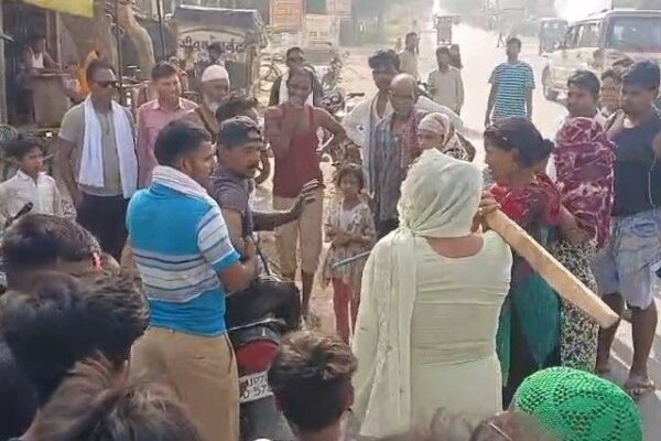 कन्नौज में तलाकशुदा पत्नी ने शौहर को सड़क पर पीटा:तलाक के बाद परेशान करने था, धमकियां देने पर पुलिस ने हिरासत में लिया