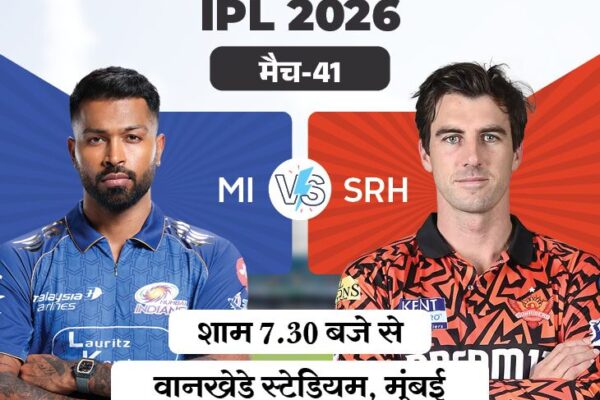स्पोर्ट्स डेस्क48 मिनट पहले कॉपी लिंक IPL 2026 के 41वें मुकाबले में आज मुंबई इंडियंस का सामना सनराइजर्स हैदराबाद से होगा। वानखेड़े स्टेडियम में शाम 7:30 बजे शुरू होने वाले इस मैच में रोहित शर्मा की वापसी हो सकती है। इस सीजन मुंबई को 7 में से 5 मैचों में हार मिली है। टीम पॉइंट्स…
