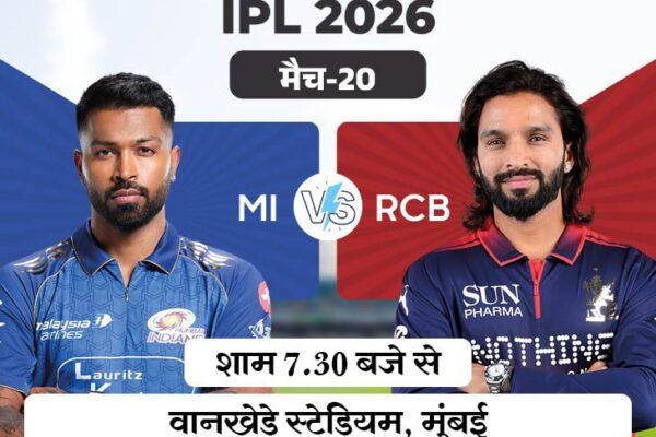 स्पोर्ट्स डेस्क2 घंटे पहले कॉपी लिंक इंडियन प्रीमियर लीग (IPL) के 19वें सीजन में आज डिफेंडिंग चैंपियन रॉयल चैलेंजर्स बेंगलुरु (RCB) के सामने 5 बार की चैंपियन मुंबई इंडियंस (MI) की चुनौती है। सीजन का 20वां मैच मुंबई के वानखेड़े स्टेडियम में शाम 7.30 बजे शुरू होगा, जिसका टॉस 7 बजे होगा। RCB ने 2…
