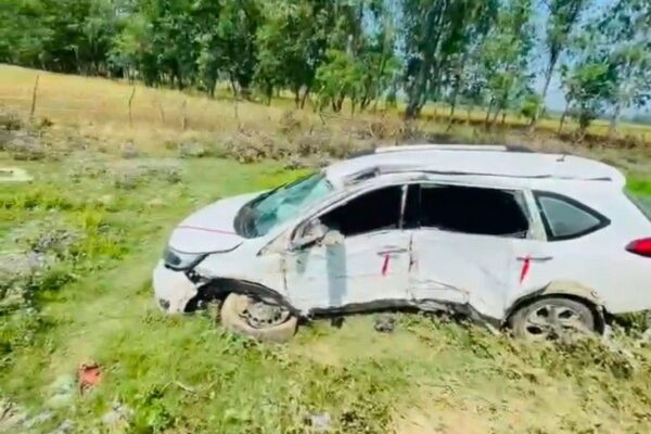 शाहजहांपुर में भीषण सड़क हादसा:अनियंत्रित कार पेड़ से टकराकर खाई में गिरी, चालक को मामूली चोट