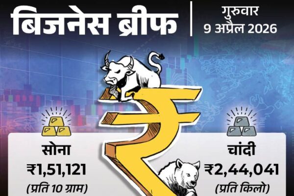 नई दिल्ली1 घंटे पहले कॉपी लिंक सोने-चांदी की कीमतों में आज यानी 9 अप्रैल को गिरावट है। इंडिया बुलियन एंड ज्वेलर्स एसोसिएशन (IBJA) के मुताबिक 10 ग्राम 24 कैरेट सोना 1 हजार रुपए घटकर 1.50 लाख रुपए आ गया है। इससे पहले यह 1.51 लाख रुपए पर था। वहीं, एक किलो चांदी 8 हजार रुपए…