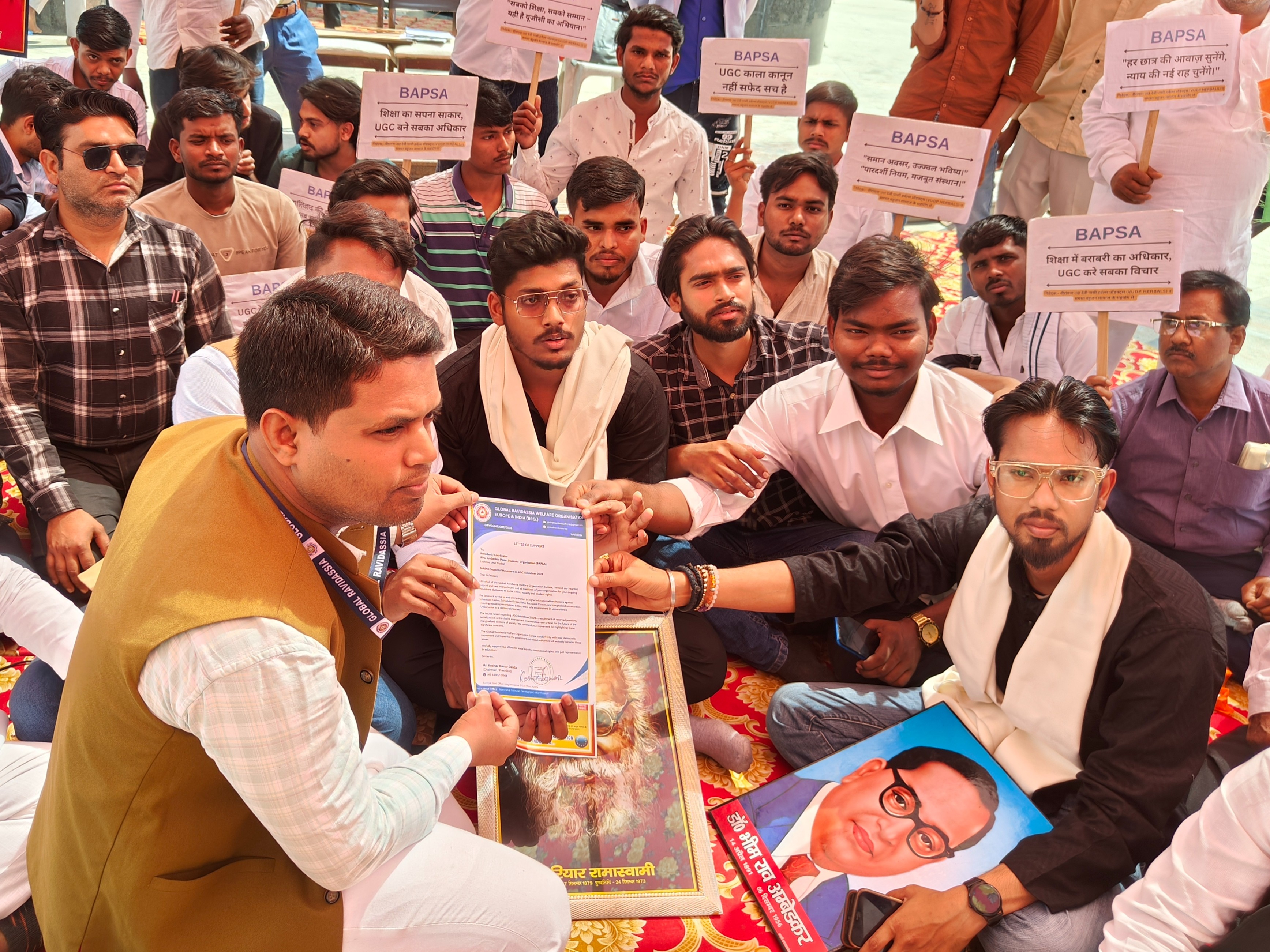 लखनऊ में बिरसा आंबेडकर फुले छात्र संगठन (BAPSA) के बैनर तले विरोध प्रदर्शन। हजरत गंज स्थित परिवर्तन चौक पर छात्रों ने दोबारा आंदोलन शुरू कर दिया है। छात्र विश्वविद्यालय अनुदान आयोग गाइडलाइंस 2026 लागू करने और उसमें आवश्यक संशोधन की मांग कर रहे है। संगठन का कहना है कि जब तक UGC लागू नहीं होता धरना समाप्त नहीं होगा।