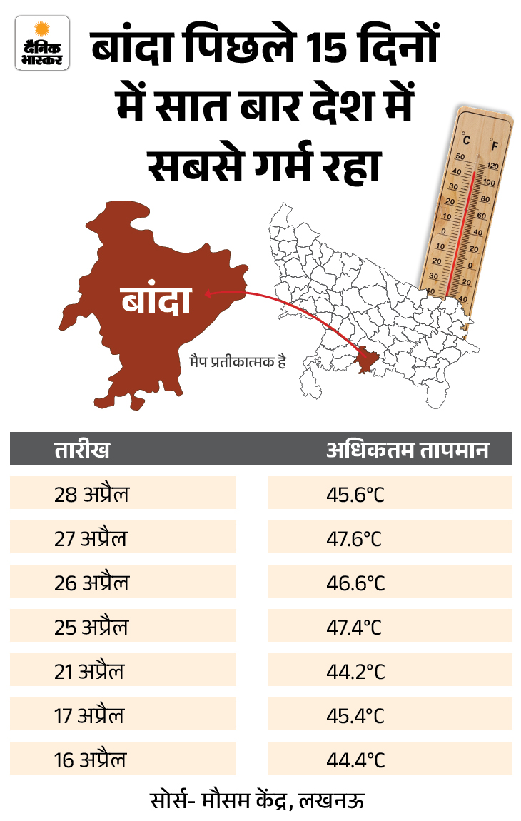 यूपी के बांदा की चर्चा इन दिनों देश-दुनिया में है। कारण है, भीषण गर्मी। 27 अप्रैल को यहां का तापमान 47.6°C तक पहुंच गया। इस दिन यह दुनिया का सबसे गर्म शहर दर्ज किया गया। सवाल उठा कि दुनिया में भीषण तपने वाले रेगिस्तानों से भी यह गर्म है? अगर हां, तो